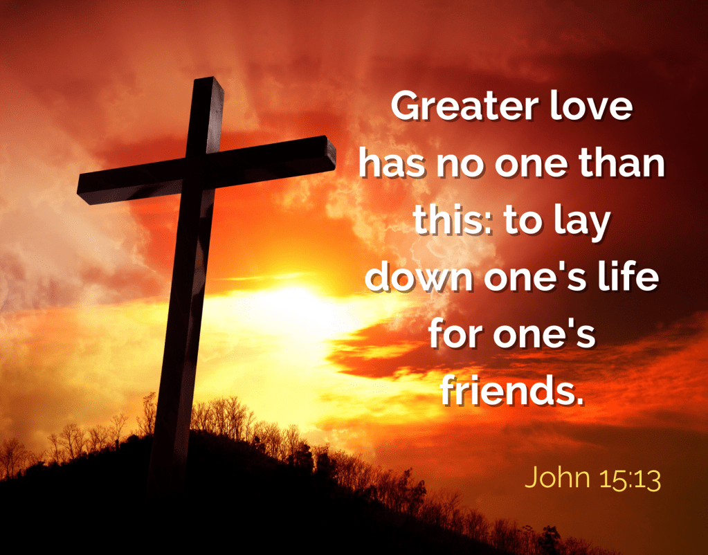 As daughters of God, we recognize that the greatest love of all was not shown by a devoted animal or a dedicated spouse, but by the Father Himself. God showed the most sacrificial love for mankind when He send His son Jesus to die on a cross to redeem us from our sin. Just like I would never knowingly watch my children float away into an unknown future as orphans, I would never willingly give up one of their lives to save anyone else. Does that mean that God loved His son less than I love mine? No, it shows that His love truly is the greatest. He loves us that much.